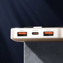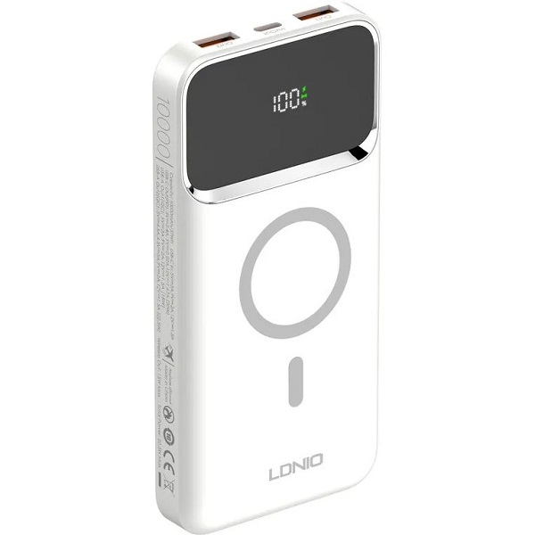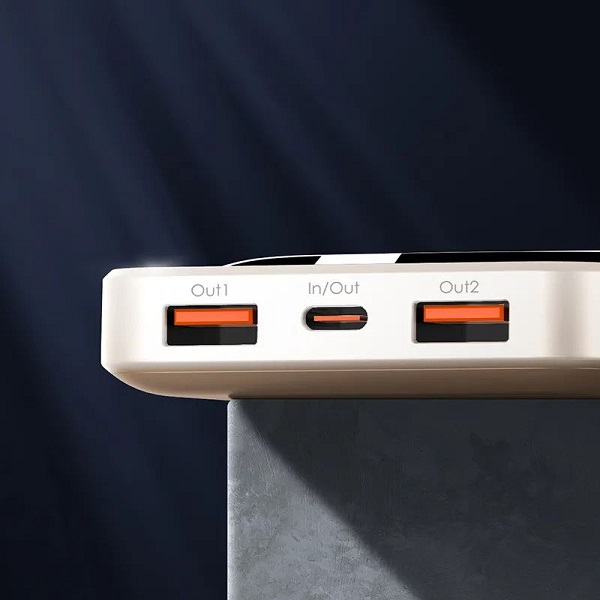 تکنولوژی فست شارژ PD و QC, شارژ وایرلس مگنتی ۱۵ واتی, دارای ۳ پورت خروجی + شارژ وایرلس, توان خروجی کلی ۲۲.۵ وات, دارای نمایشگر LED برای درصد باتری